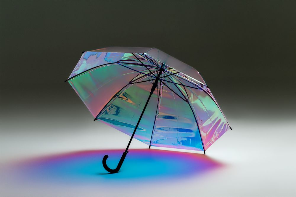 Перламутрово-металлическое напыление на прозрачном куполе создает нежные переливчатые блики. С таким зонтом дождливый день будет казаться солнечным.