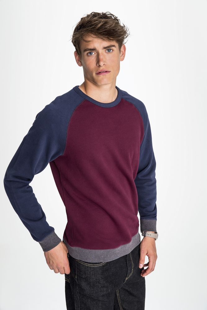 Трехцветный свитшот в стиле 80-х с рукавом реглан. Лейбл производителя в боковом шве изнутри, в шве горловины — только бирка с размером, что позволяет вам нанести свой логотип.