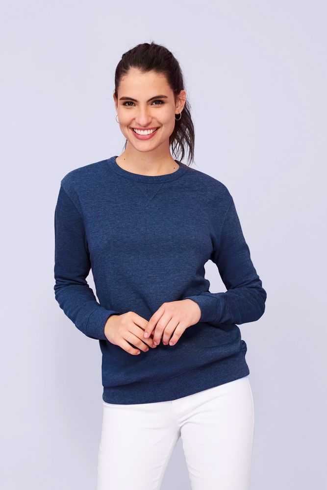 Женская утепленная толстовка с круглым вырезом и декоративной треугольной вставкой. Лейбл производителя в боковом шве изнутри, в шве горловины — только бирка с размером, что позволяет вам нанести свой логотип.