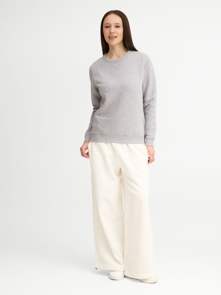 Женская утепленная толстовка с круглым вырезом и декоративной треугольной вставкой. Лейбл производителя в боковом шве изнутри, в шве горловины — только бирка с размером, что позволяет вам нанести свой логотип.