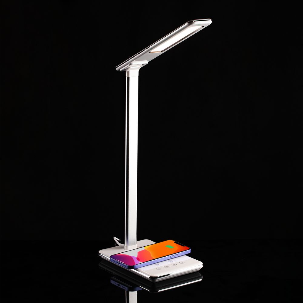 Лампа совместима со всеми мобильными устройствами, поддерживающими технологию беспроводной зарядки Qi. Зарядка начинается автоматически при размещении смартфона на поверхности лампы.