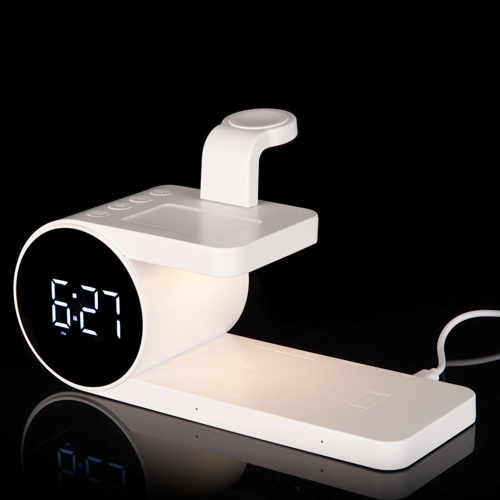 fullStack — технологичное многофункциональное устройство, которое сразу сочетает в себе станцию беспроводной зарядки разнообразных устройств, электронные часы с будильником и ночную лампу.