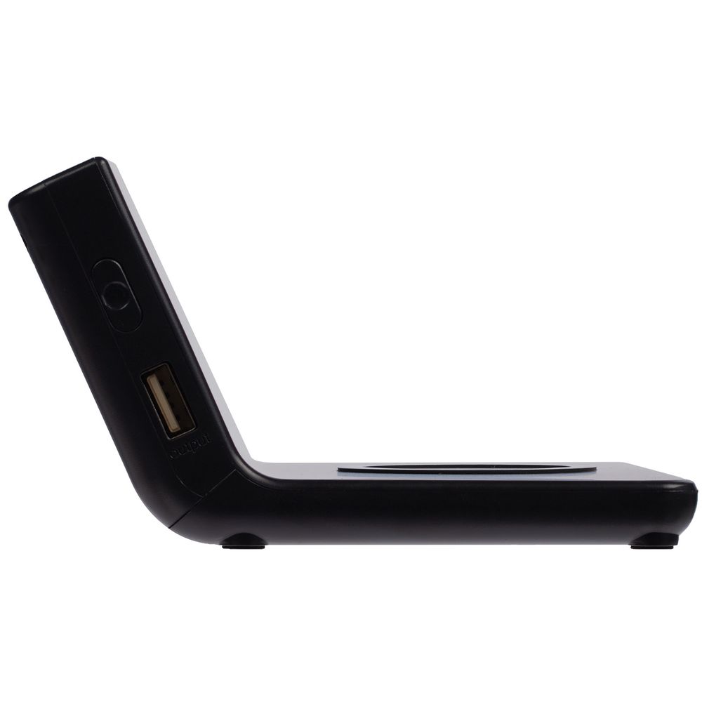 Зарядная станция совместима со всеми мобильными устройствами, поддерживающими технологию беспроводной зарядки Qi. Зарядка начнется автоматически при размещении гаджета на индукционной площадке. USB-порт для проводной зарядки — с задней стороны устройства.