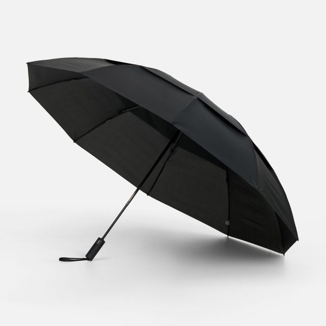 Зонт twoGether вне конкуренции: 10 гибких спиц для лучшей ветрозащиты, огромный двухслойный купол диаметром 130 см, который легко укроет двух-трех человек, и система обратного сложения для максимального комфорта.