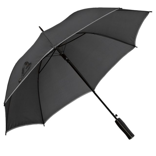 Зонт-трость с мягкой ручкой и цветными деталями на куполе и ручке.